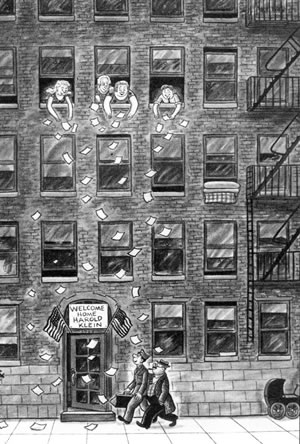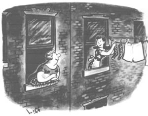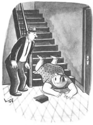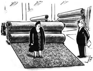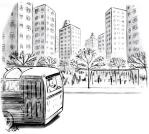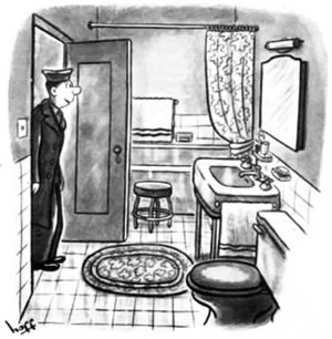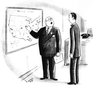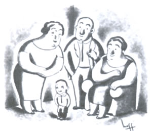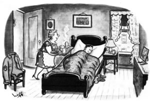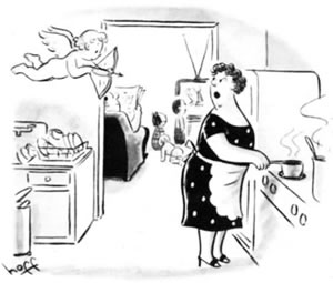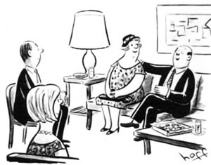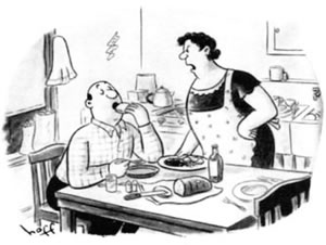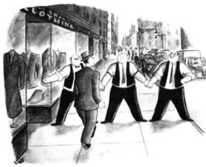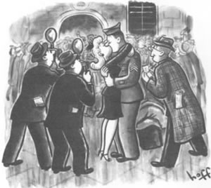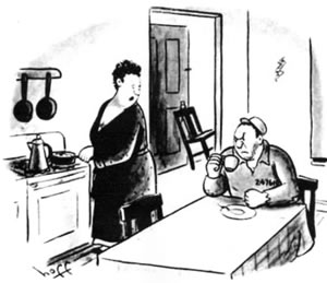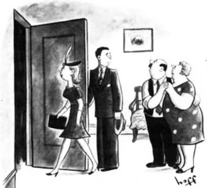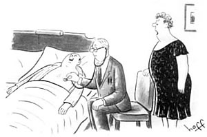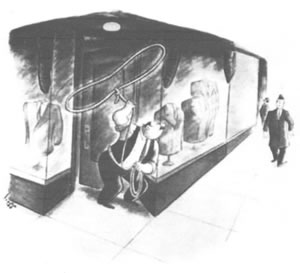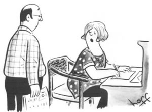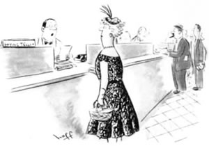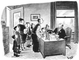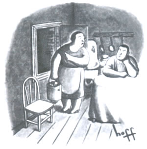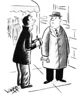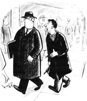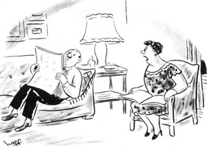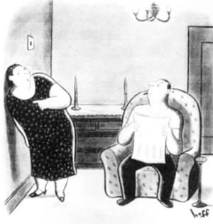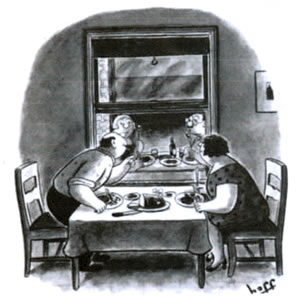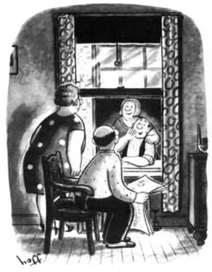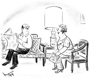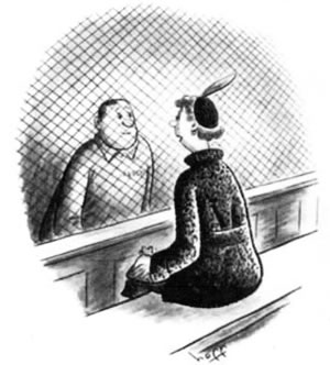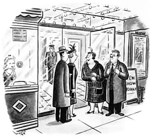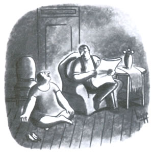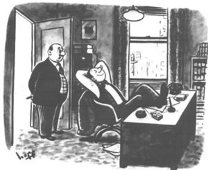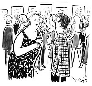 “When I started at the New Yorker, they had what was known as the 'Art Meeting'. We knew that a group of four or five people, presided over by Harold Ross, looked over the drawings. The group included Wolcott Gibbs, the Drama Editor, E. B. White and his wife Katherine. I was scared to death-we knew that the drawings were brought in and placed on an easel in front of them, and the group decided which of our cartoons belonged in the magazine. We dropped our drawings off on a Tuesday and Thursday we returned. On Thursday we stepped up to the window, gave our names, and if a manila envelope was handed to us, we knew that we had failed. The first time I went up, they bought one and this was the most sensational event of my life. This was my turning point – as I had been intending to become a serious painter.”