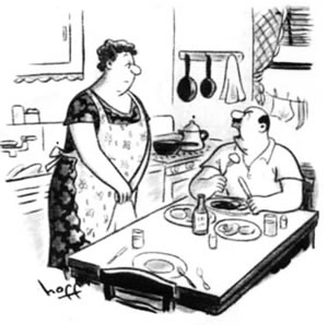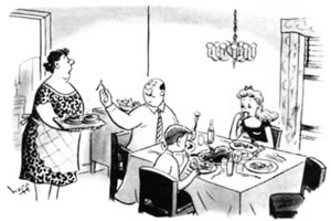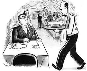 "You were right, sir.  It was dishwater. The chef regrets the error."  (Apr 26, 1952) |
