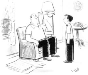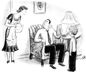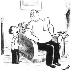 "Suppose he doesn't get the best marks in his class. Do you get the highest salary in your office?"   (Mar. 4, 1950) |