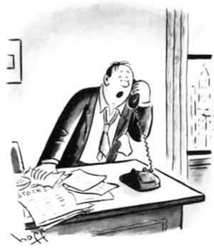 "The bottom dropped out of Consolidated Potash. I'm ruined! You're all I have left now, Myrna. Myrrna!  Are you there?"  (Oct 24, 1959) |