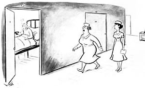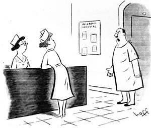 "Let me answer it, and then we'll see how long he keeps ringing for the night nurse."  (Apr 7, 1956)  |