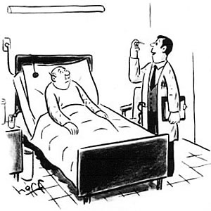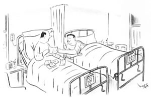 "For Pete's sake, don't you have any get-well cards of your own?"  (Aug 23, 1958) |