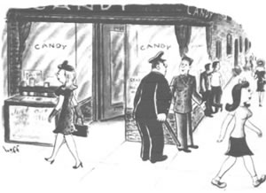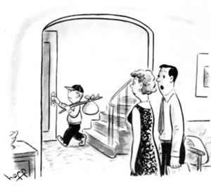 "How do you expect the children to respect you if you don't get time off for good behavior?"  (July 7, 1951) |