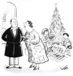 "And this is my mother-in-law, who disapproved of me from the start and has, I suppose, lived to see her judgment roundly confirmed."  (Dec. 18, 1971) |